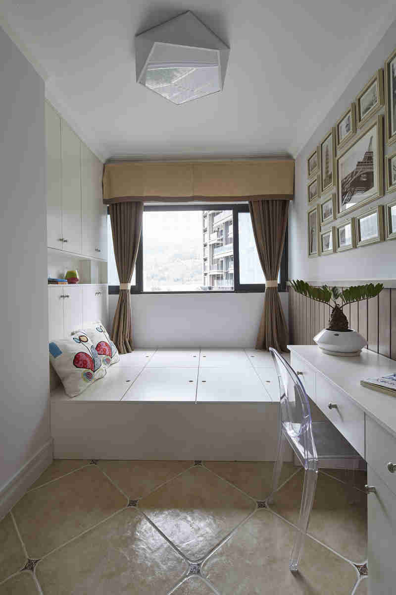 | ▼墙角的大空间 墙角是常常会被忽略的地方,在墙角上半部位置定制一个转角柜,在不影响原本活动空间的同时,又增添了一个容量十分可观的收纳容器。